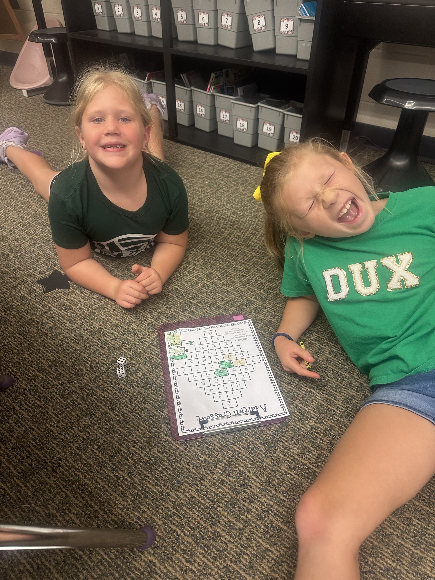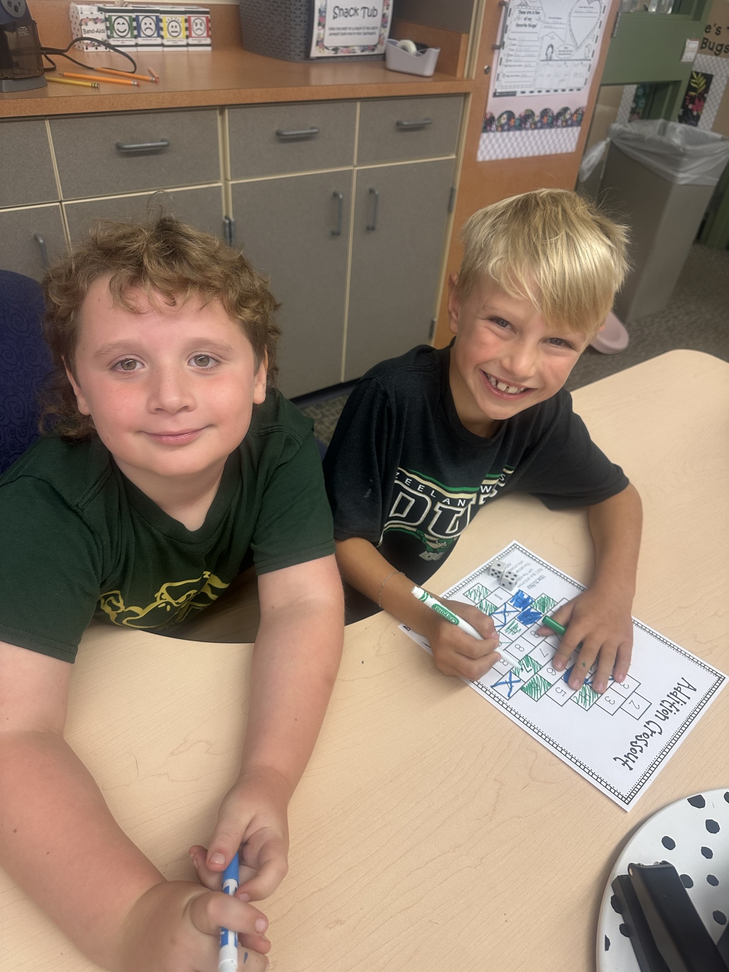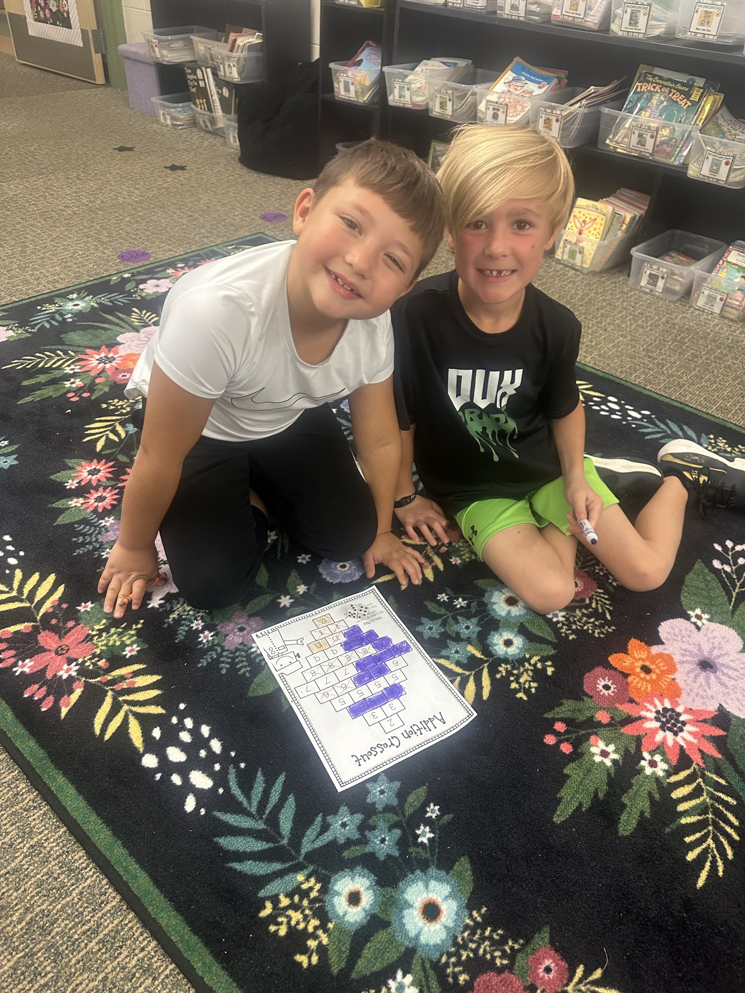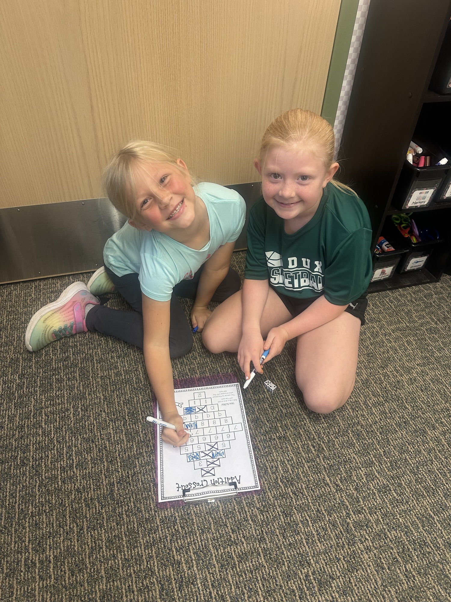 When our math lesson is finished each day, we have some time to play math games from our math shelf! They are a fun way to practice math facts and skills with friends. Check out the Lightning Bugs playing Addition Crossout.