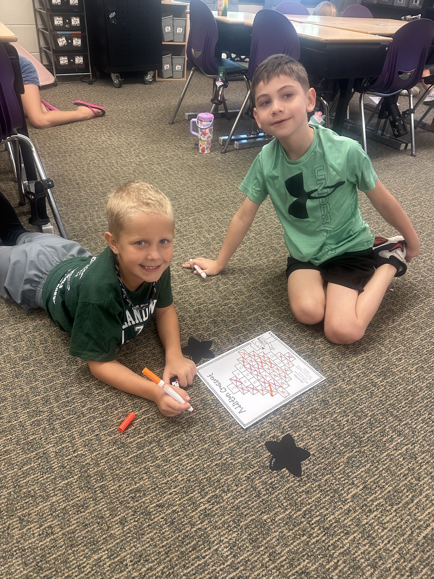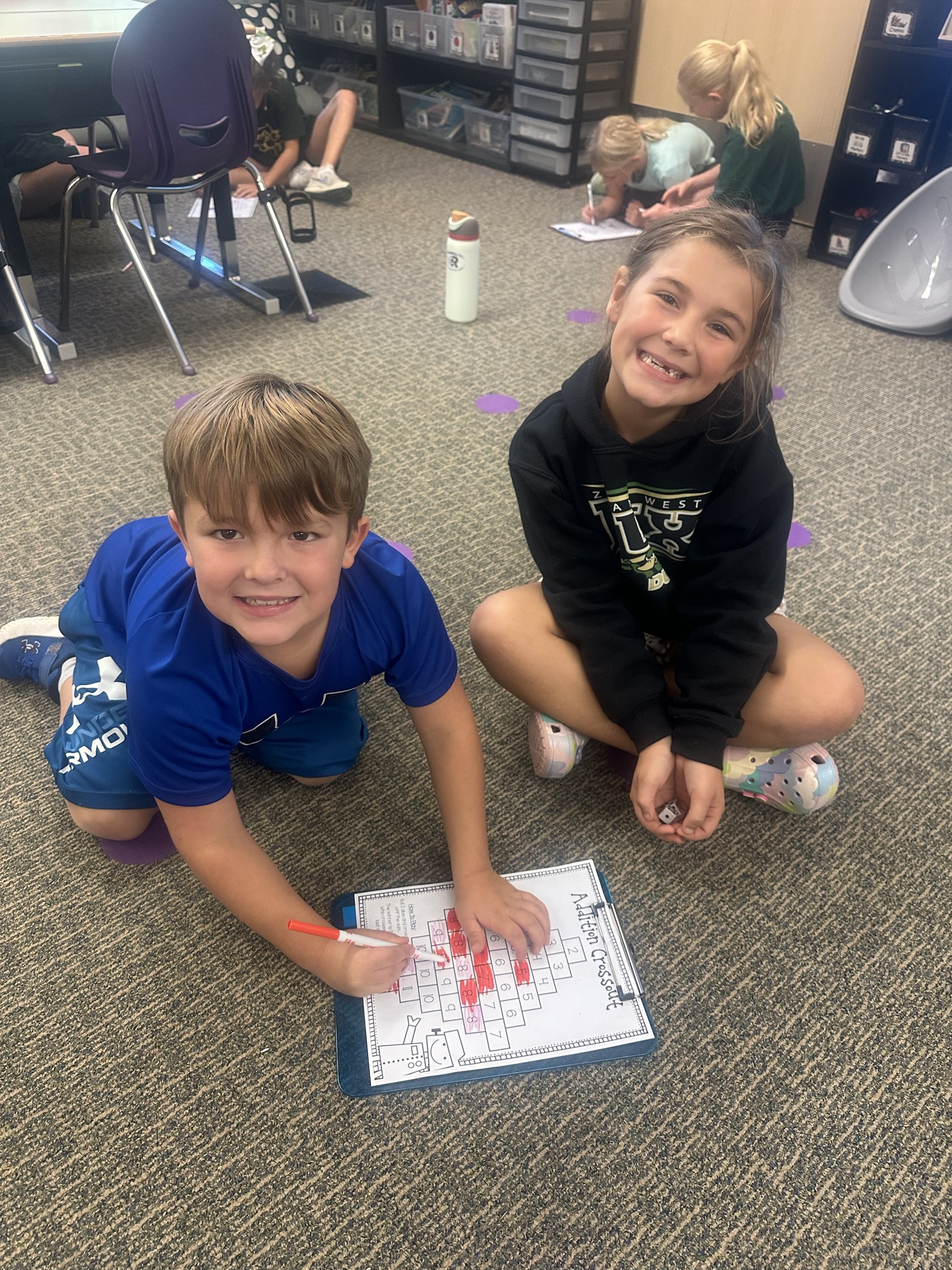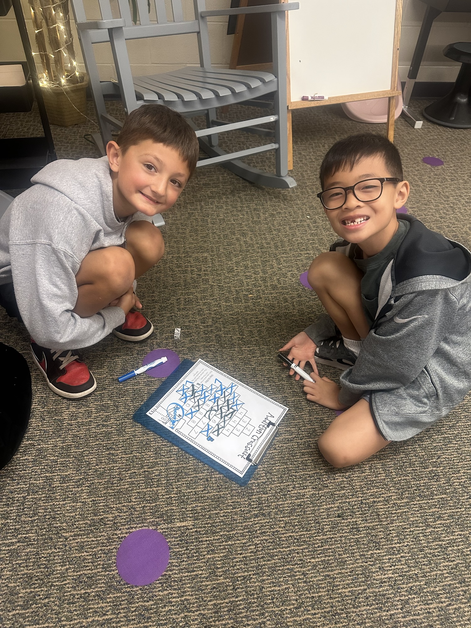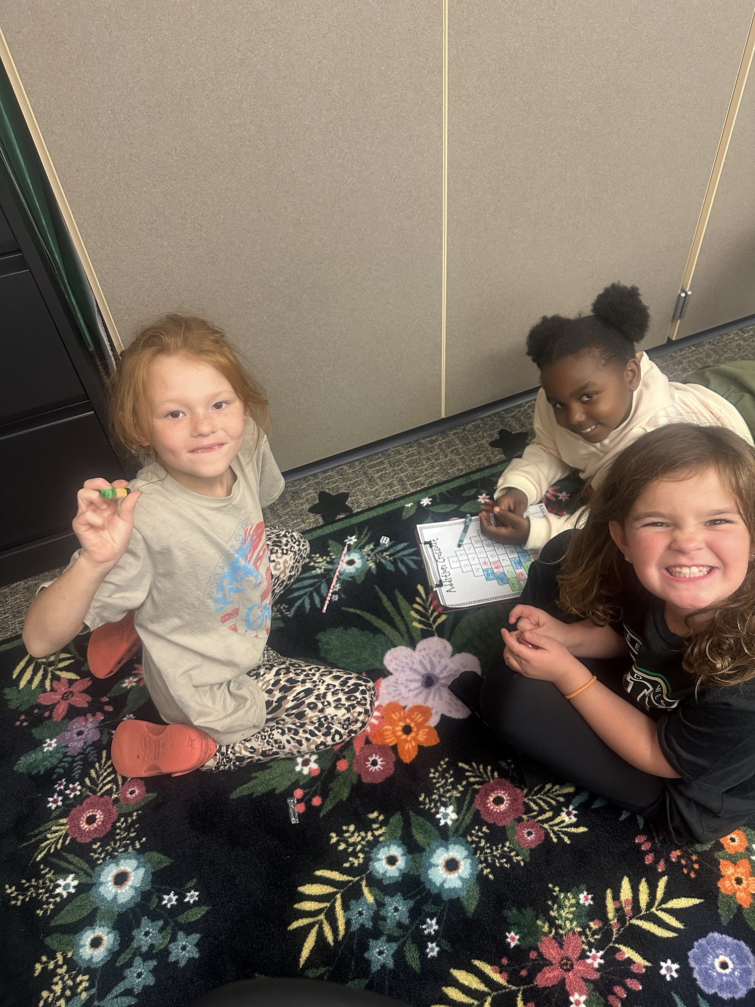 When our math lesson is finished each day, we have some time to play math games from our math shelf! They are a fun way to practice math facts and skills with friends. Check out the Lightning Bugs playing Addition Crossout.